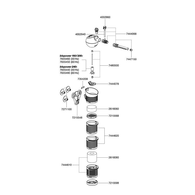 EHEIM BioPower 160 budową przypomina EHEIM AquaBall, różni się jednak mechanizmem przepływu wody. AquaBall filtruje wodę przez wszystkie koszyki, jak typowy filtr wewnętrzny. BioPower natomiast zasysa wodę tylko przez dolny koszyk, środkowe kosze są zamknięte. Dzięki temu woda przechodzi kolejno od dołu przez wszystkie koszyki, dzięki czemu w filtrze wewnętrznym uzyskujemy sposób filtracji stosowany w filtrach zewnętrznych. Środkowe koszyki są wypełnione wkładem biologicznym EHEIM, co jeszcze bardziej przybliża go do filtra zewnętrznego. Filtr posiada szybki system demontażu kolejnych koszyków, easyClick, co znacznie przyspiesza demontaż filtra do czyszczenia . Dodatkową zaletą jest energooszczędność filtrów z tej serii. W zestawie zawarty jest dyfuzor powietrza i deszczownica wraz z polską instrukcją obsługi.